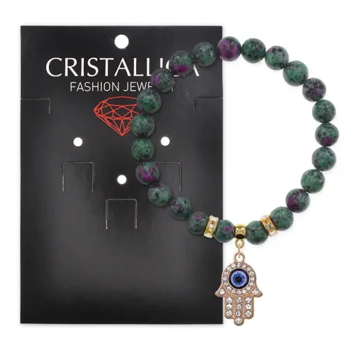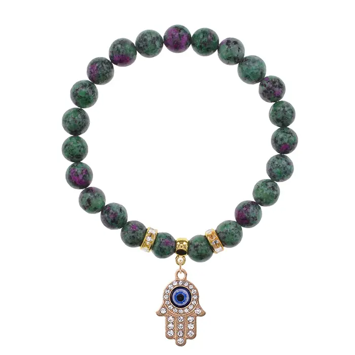 Стрейч-браслет с символом Хамса из синтетического камня цоизит.