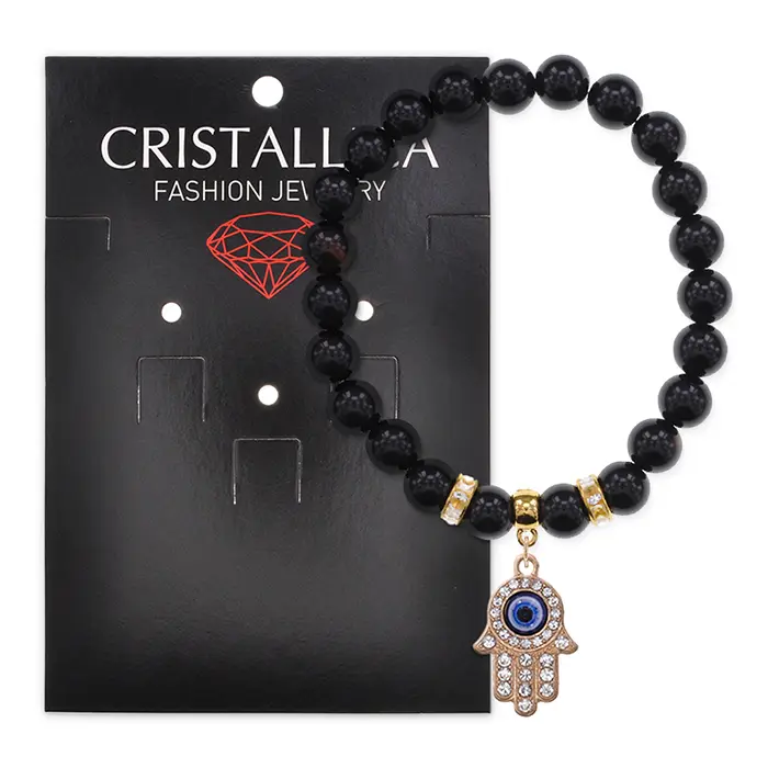 Браслет Хамса (защита от сглаза и зла) нат.камень Черный агат 8мм BS-CR-0353