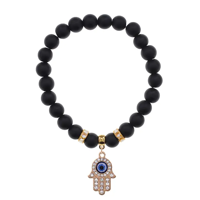 Браслет Хамса (защита от сглаза и зла) синт.камень Шунгит 8мм BS-CR-0354