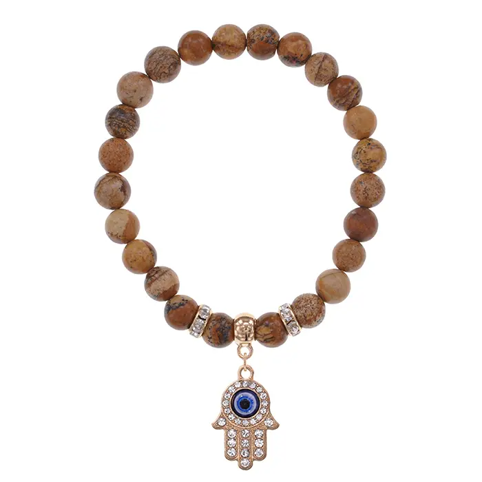 Браслет Хамса (защита от сглаза и зла) нат.камень Песочная яшма 8мм BS-CR-0360
