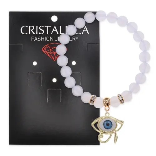Браслет из коллекции Cristallica, изготовленный из синтетического лунного камня, со стрейч-основой и фурнитурой цвета светлое золото.