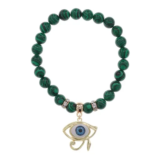 Стрейч-браслет из синтетического камня малахит с символикой Око Ра.