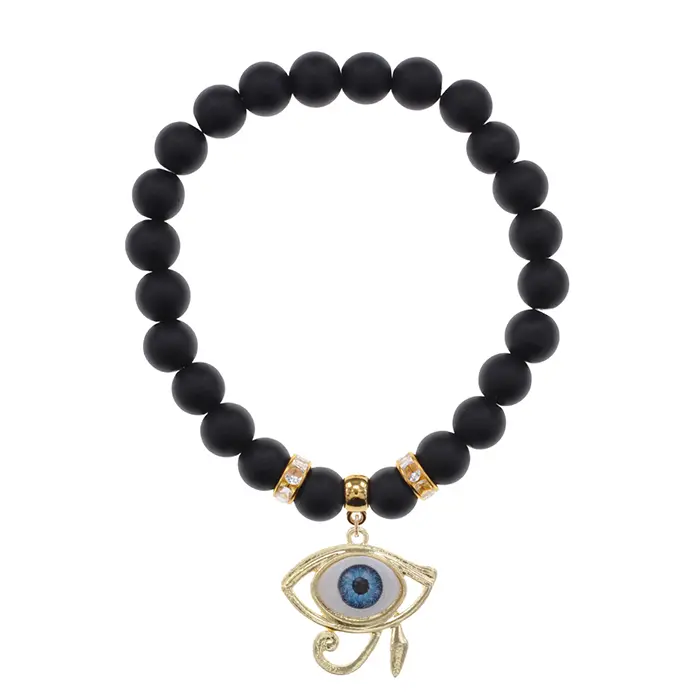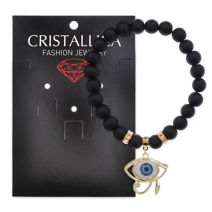 Браслет Око Ра (дар предвидения) синт.камень Шунгит 8мм BS-CR-0414