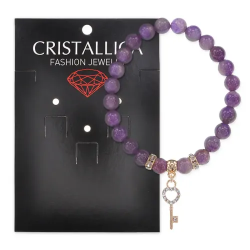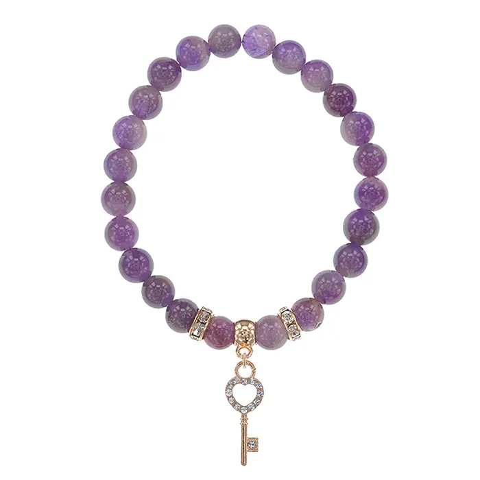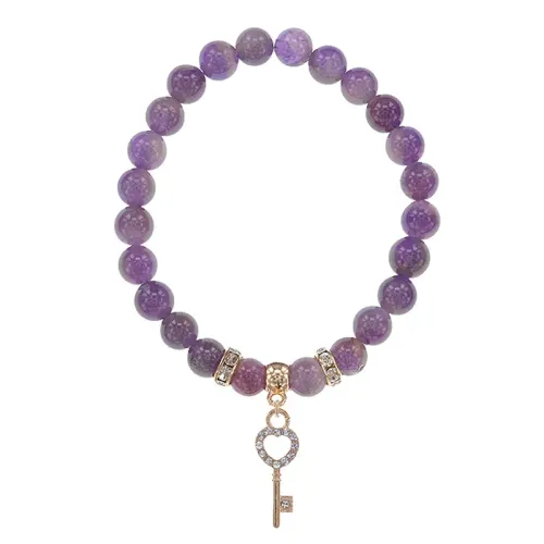 Браслет Ключ (счастье) нат.камень Аметист 8мм BS-CR-0423