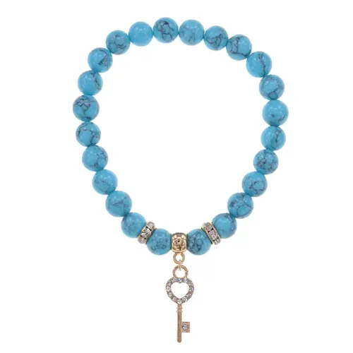 Браслет Ключ (Счастье) синт.камень Бирюза 8мм BS-CR-0425