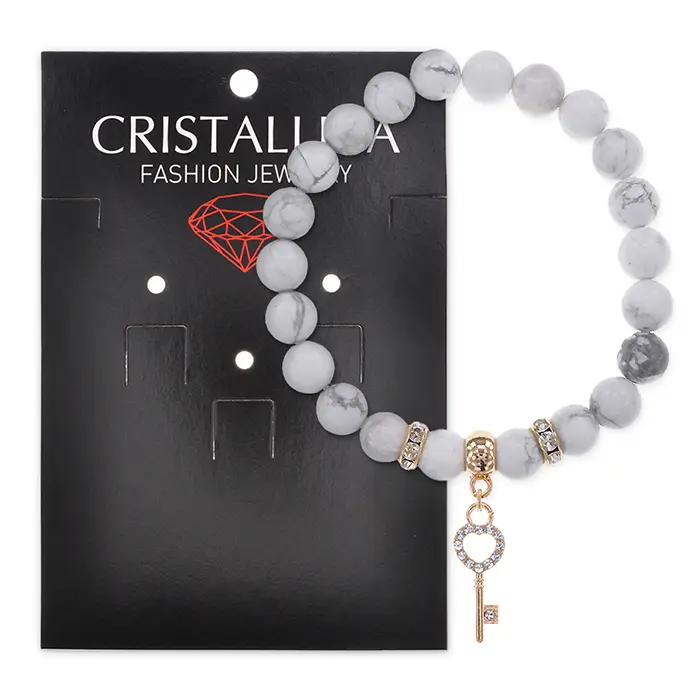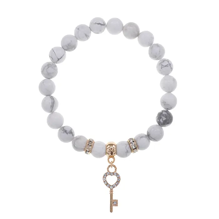 Браслет Ключ (счастье) нат.камень Кахолонг 8мм BS-CR-0427