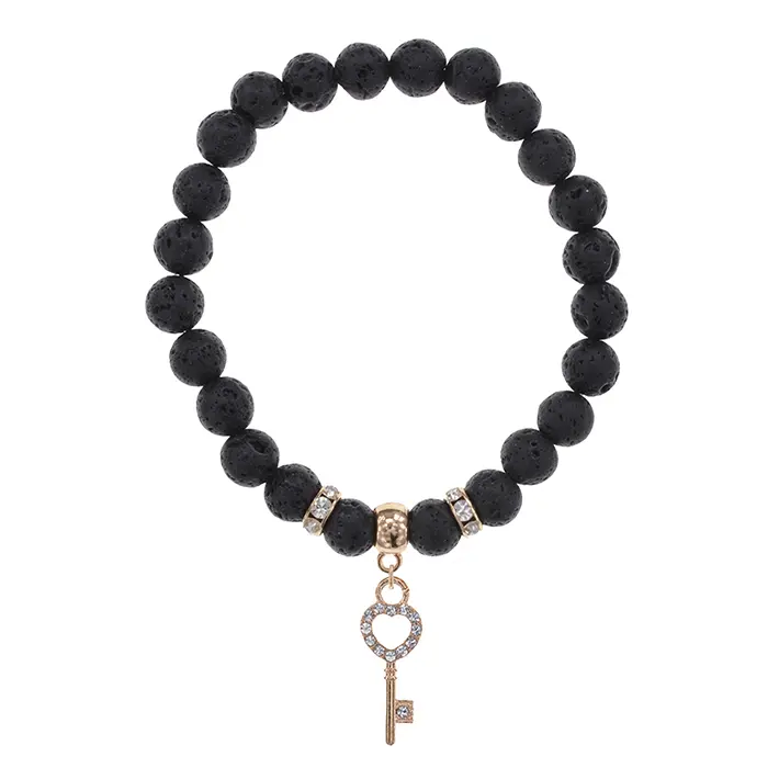 Браслет Ключ (счастье) нат.камень Лава 8мм BS-CR-0429