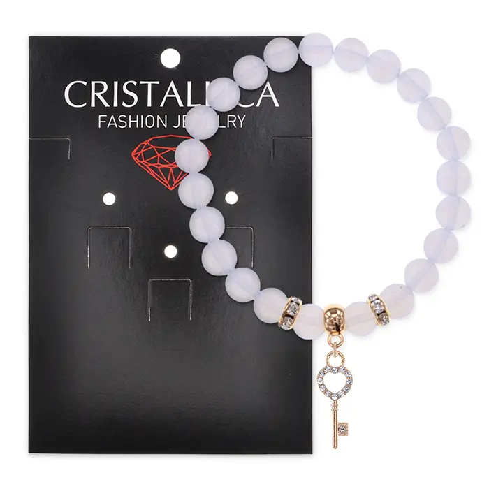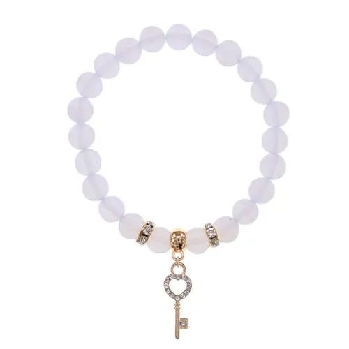 Стрейч-браслет из синтетического лунного камня с подвеской в виде ключа.