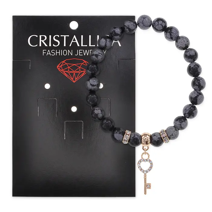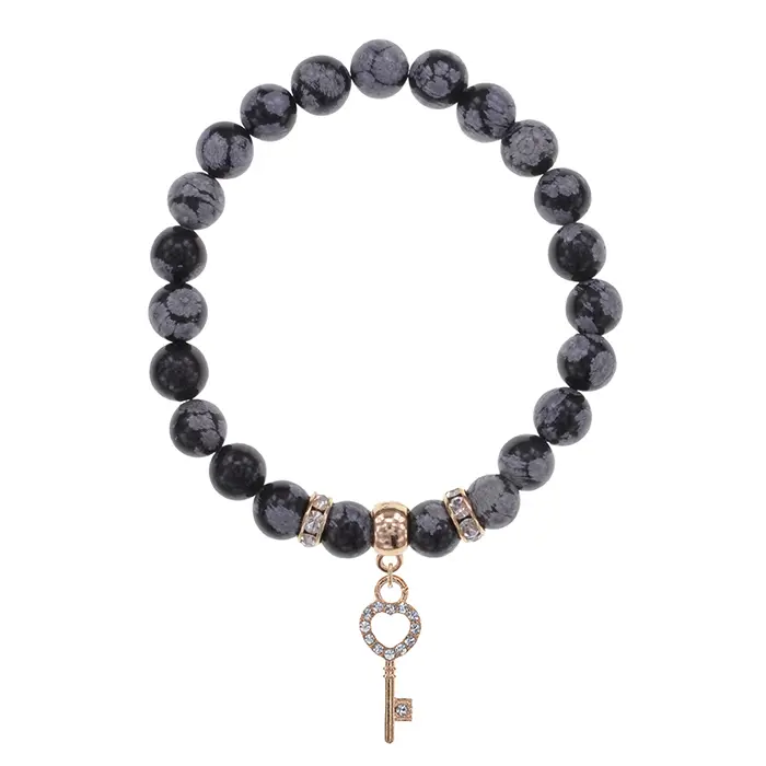 Браслет Ключ (счастье) нат.камень Снежный обсидиан 8мм BS-CR-0434