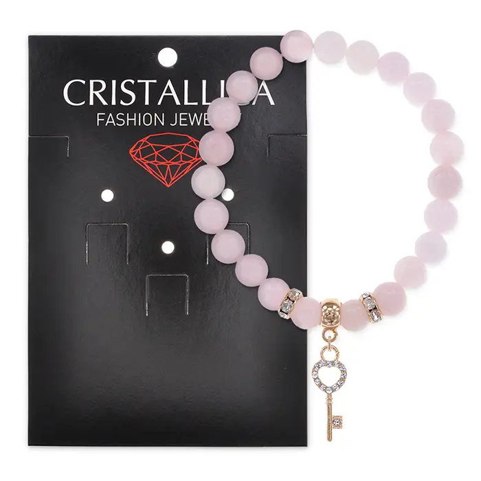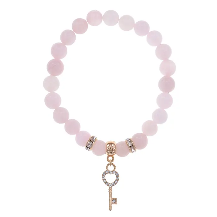 Браслет Ключ (Счастье) нат.камень Розовый кварц 8мм BS-CR-0435