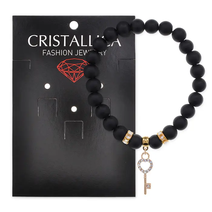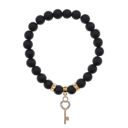Браслет Ключ (счастье) синт.камень Шунгит 8мм BS-CR-0444