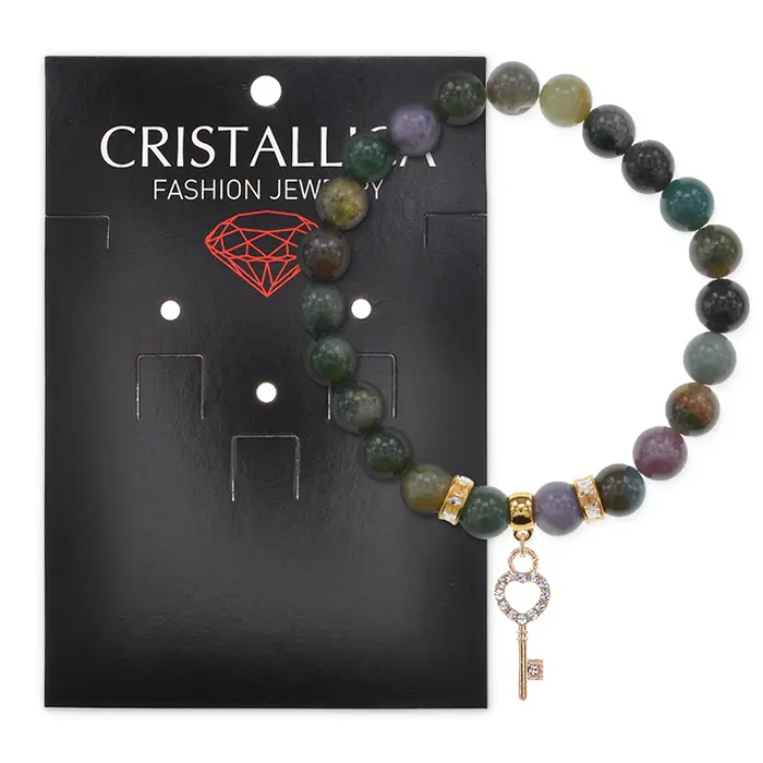 Размеры и комплектация: Диаметр бусин 8 мм, внутренний диаметр браслета ~5.5 см. Упаковка: прозрачный пакет с еврослотом и подложка Cristallica.