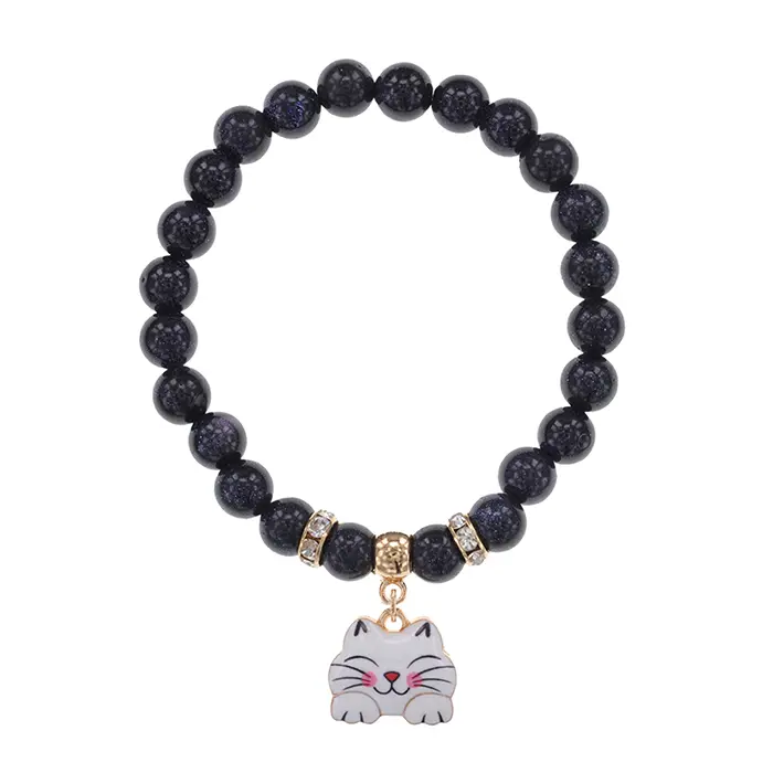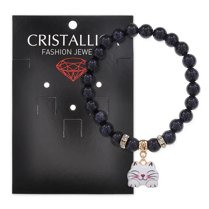 Стрейч-браслет из синтетического камня с подвеской в виде кошки.
