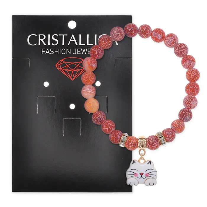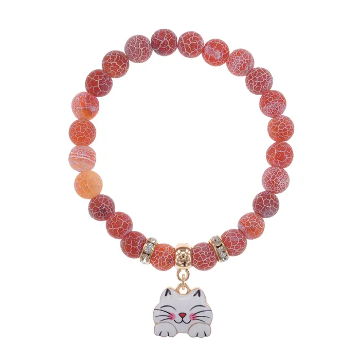 Стрейч-браслет из натурального африканского агата с декоративным элементом в виде кошки.