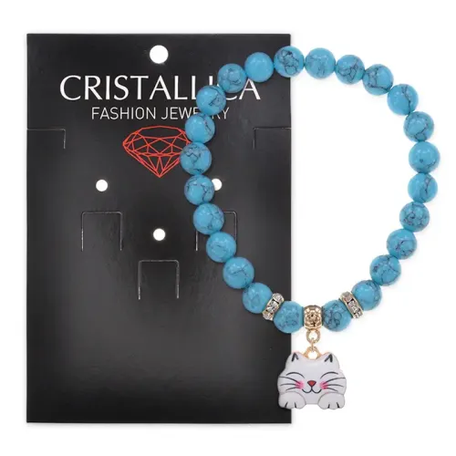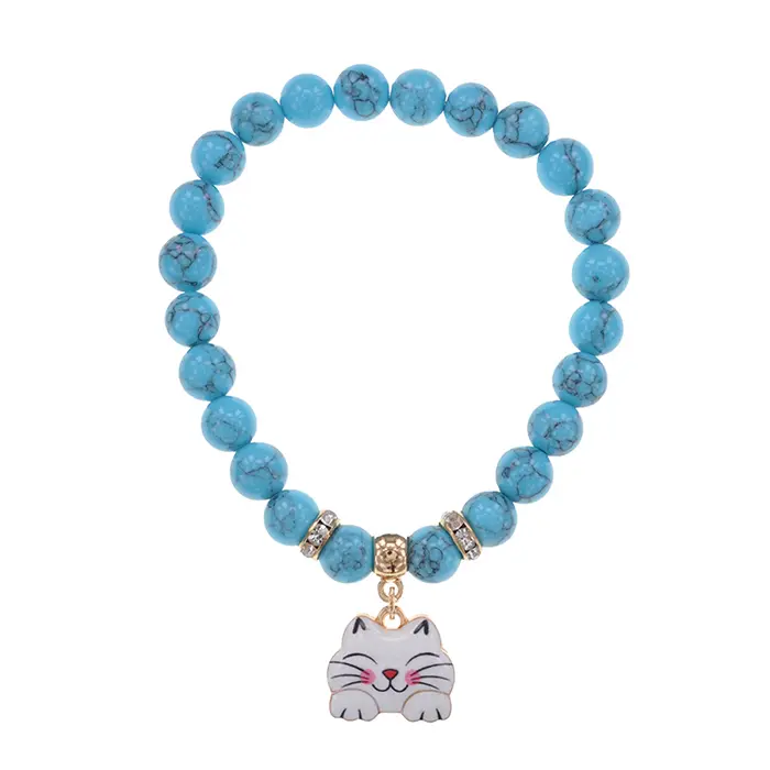 Браслет из синтетического камня бирюза с подвеской в виде кошки.