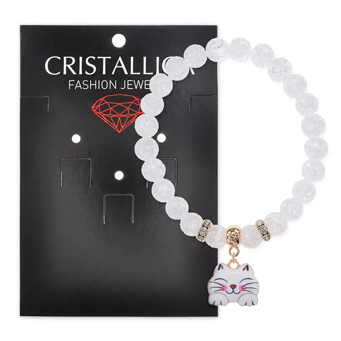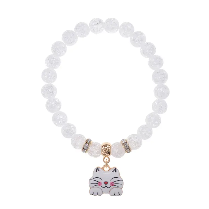 Браслет Кошка (защита, интуиция, достаток) синт.камень Сахарный кварц 8мм BS-CR-0466