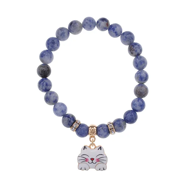 Браслет Кошка (защита, интуиция, достаток) нат.камень Содалит 8мм BS-CR-0468