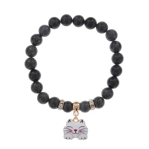 Браслет из натурального камня змеевик с подвеской в виде кошки.