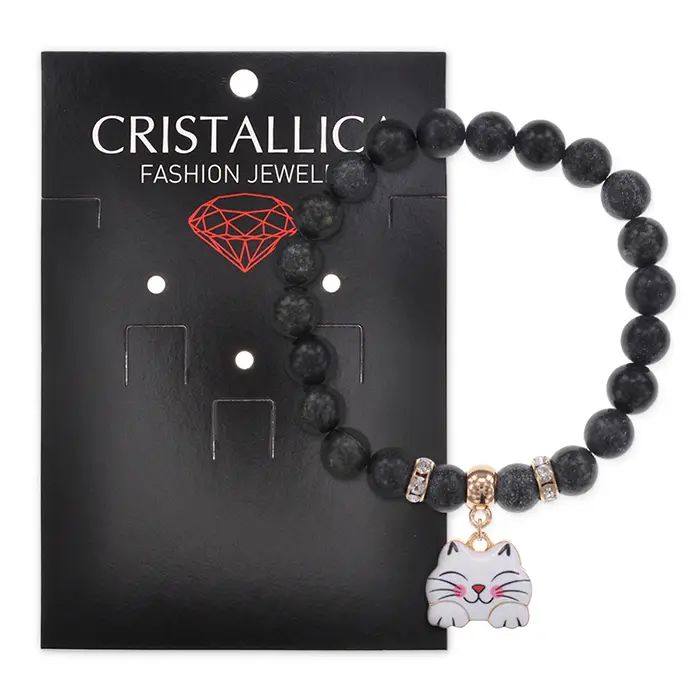 Размеры и комплектация: Диаметр бусин 8 мм, внутренний диаметр браслета ~5.5 см. Упаковка — прозрачный пакет с еврослотом и подложкой.