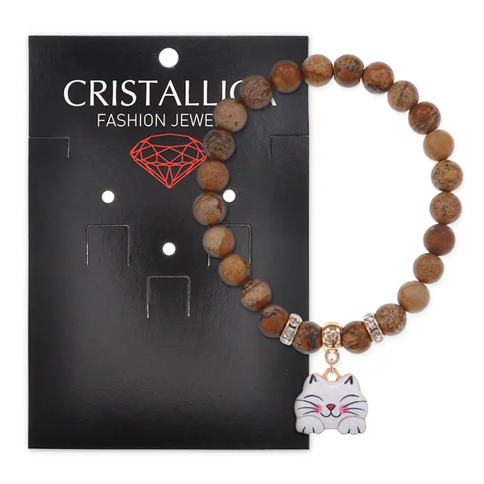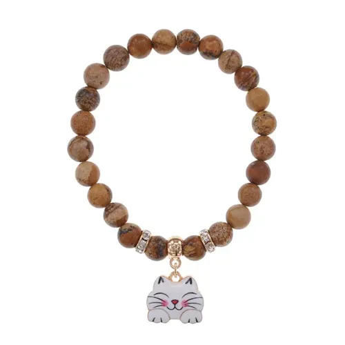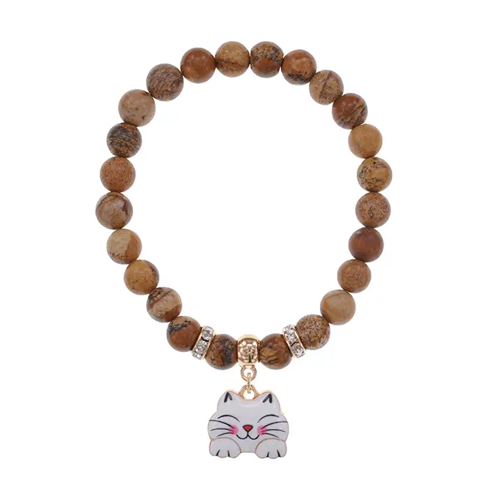 Браслет Кошка (защита, интуиция, достаток) нат.камень Песочная яшма 8мм BS-CR-0480