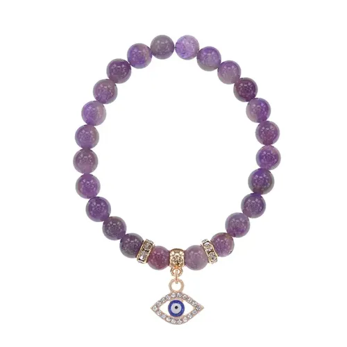 Браслет Глаз (от сглаза и порчи) нат.камень Аметист 8мм BS-CR-0483