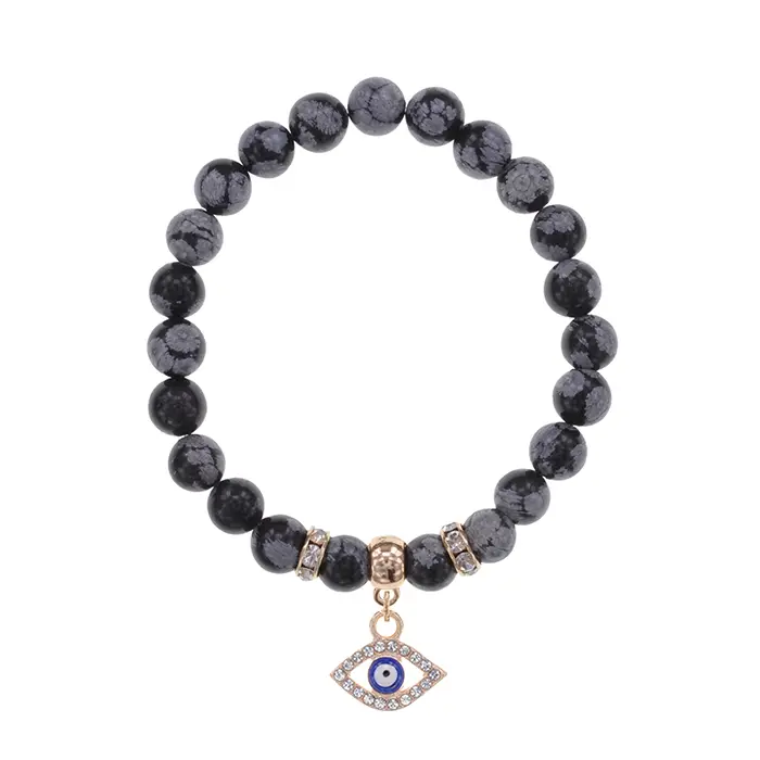 Браслет Глаз (от сглаза и порчи) нат.камень Снежный обсидиан 8мм BS-CR-0494