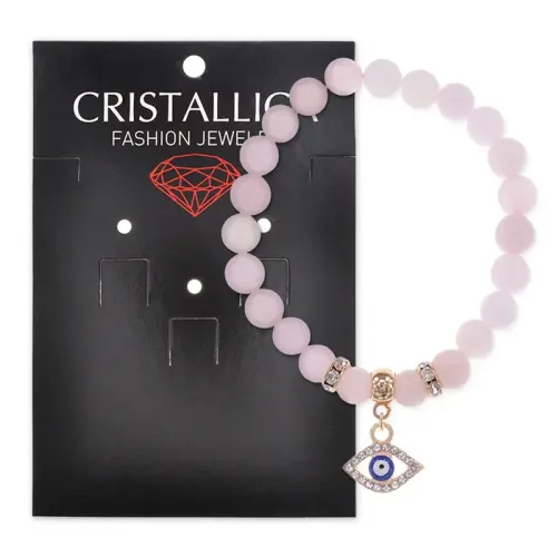 Браслет Глаз (от сглаза и порчи) нат.камень Розовый кварц 8мм BS-CR-0495