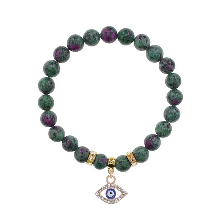 Браслет Глаз (от сглаза и порчи) синт.камень Цоизит 8мм BS-CR-0502