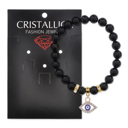 Браслет Глаз (от сглаза и порчи) нат.камень Черный агат 8мм BS-CR-0503
