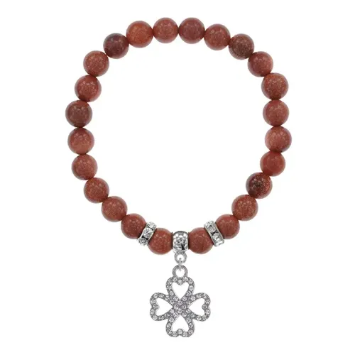 Стрейч-браслет из синтетического коричневого авантюрина с бусинами в виде клевера.