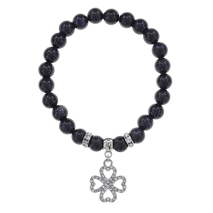 Браслет Клевер (удача и везение) синт.камень Синий авантюрин 8мм BS-CR-0512