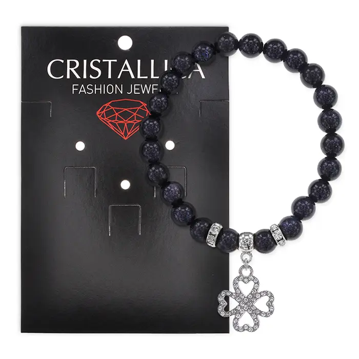 Стрейч-браслет из коллекции Cristallica с подвеской в виде клевера. Материал бусин — синий авантюрин.