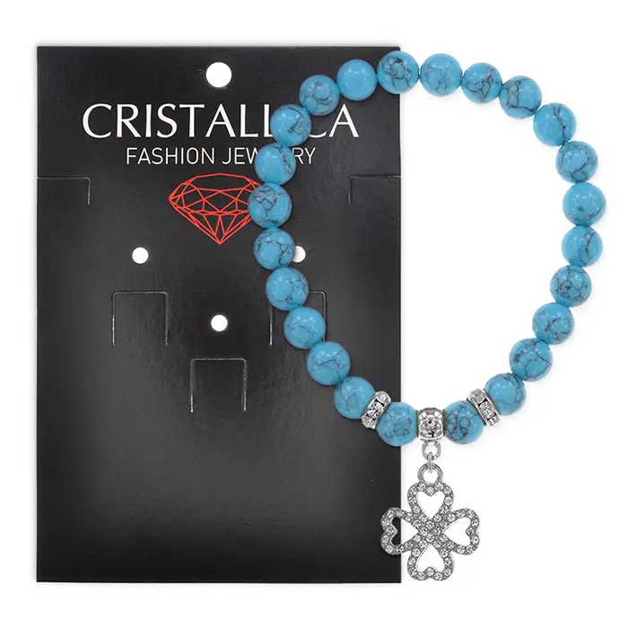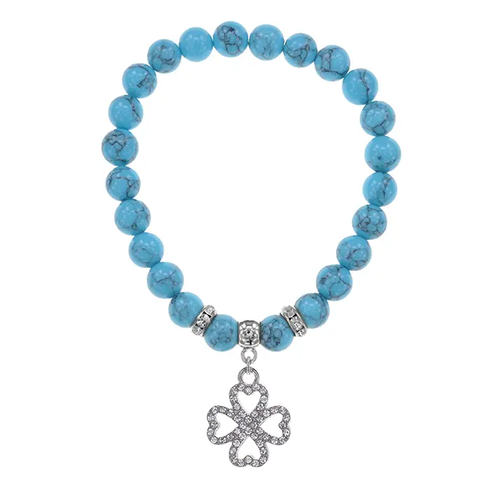 Браслет Клевер (удача и везение) синт.камень Бирюза 8мм BS-CR-0515