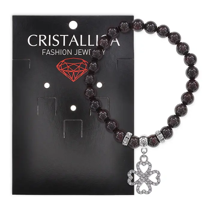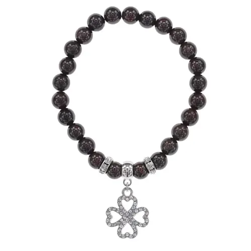 Браслет Клевер (удача и везение) нат.камень Гранат 8мм BS-CR-0516