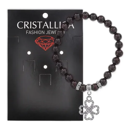 Стрейч-браслет из натурального камня гранат и стразов, модель «Клевер».