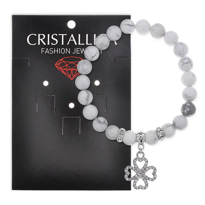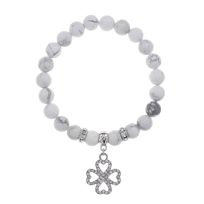 Браслет Клевер (удача и везение) нат.камень Кахолонг 8мм BS-CR-0517