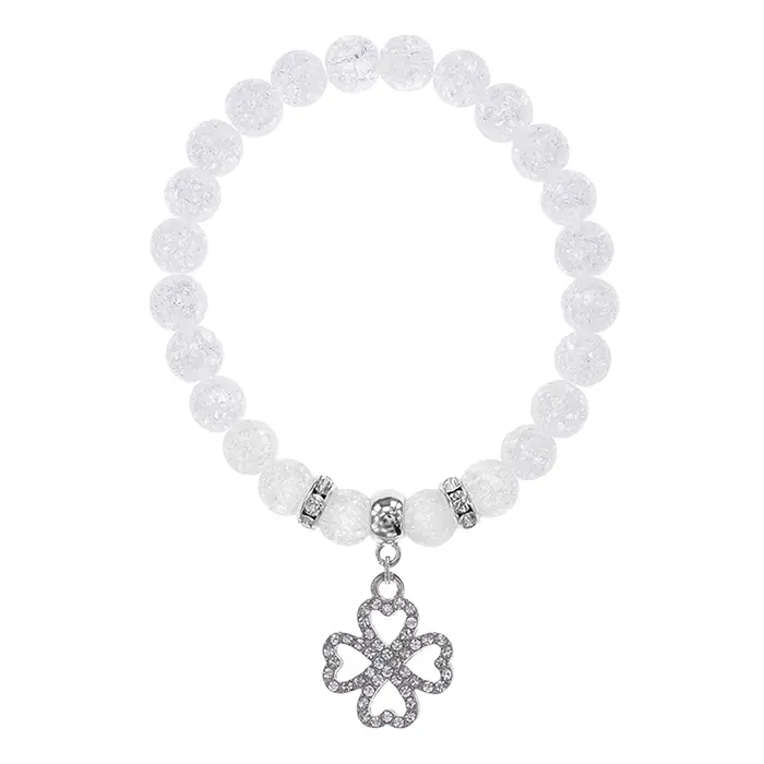 Браслет Клевер (удача и везение) синт.камень Сахарный кварц 8мм BS-CR-0526