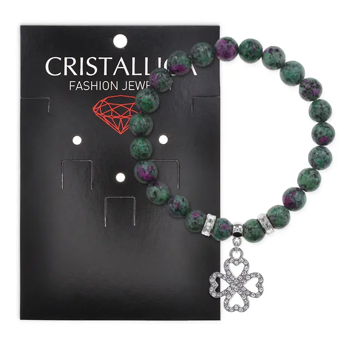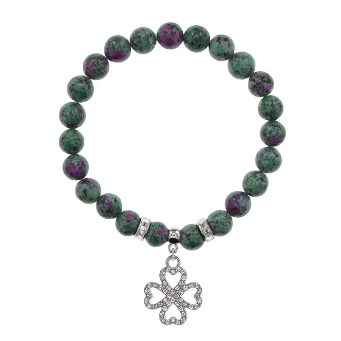 Стрейч-браслет из синтетического камня цоизит с дизайном в виде клевера.