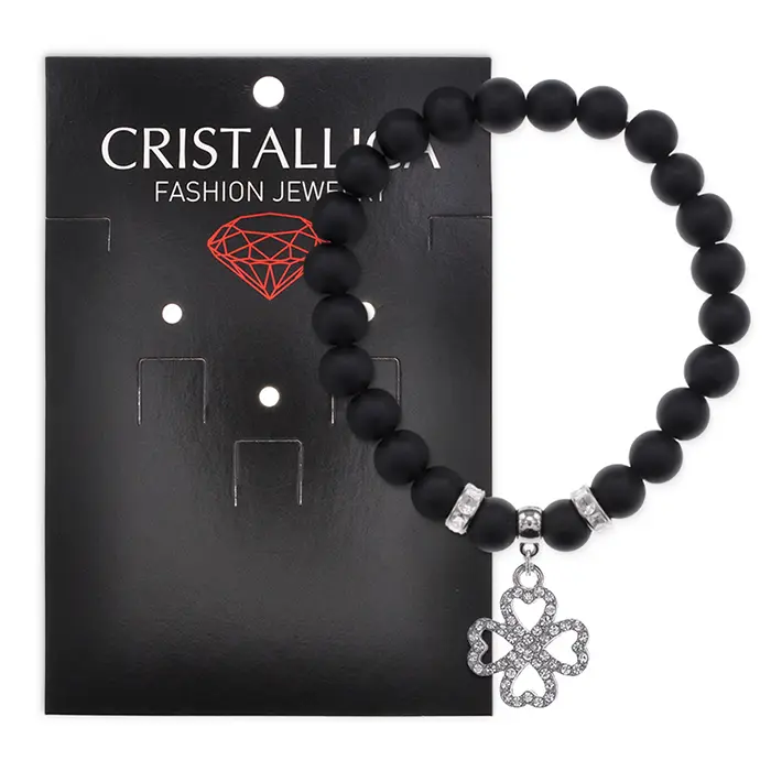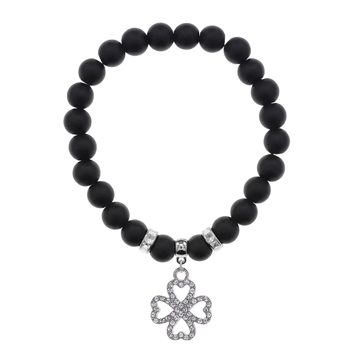 Браслет Клевер (удача и везение) синт.камень Шунгит 8мм BS-CR-0534