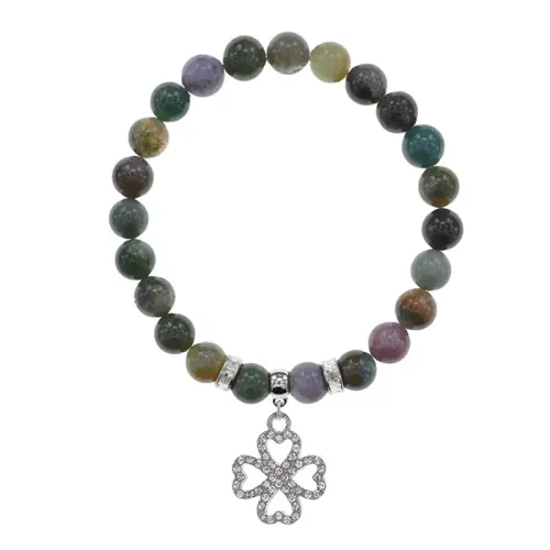 Стрейч-браслет из натуральной яшмы с подвеской в виде клевера.