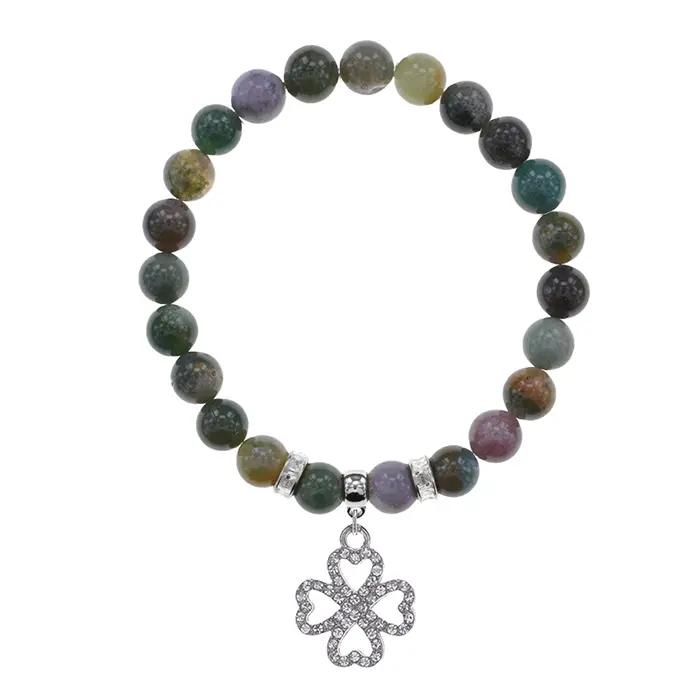 Браслет Клевер (удача и везение) нат.камень Яшма 8мм BS-CR-0535