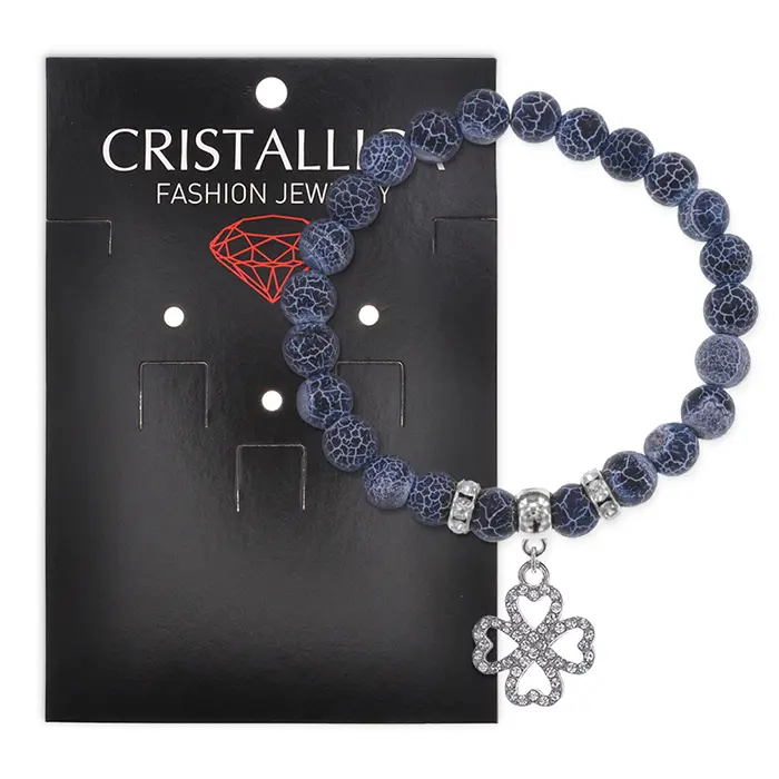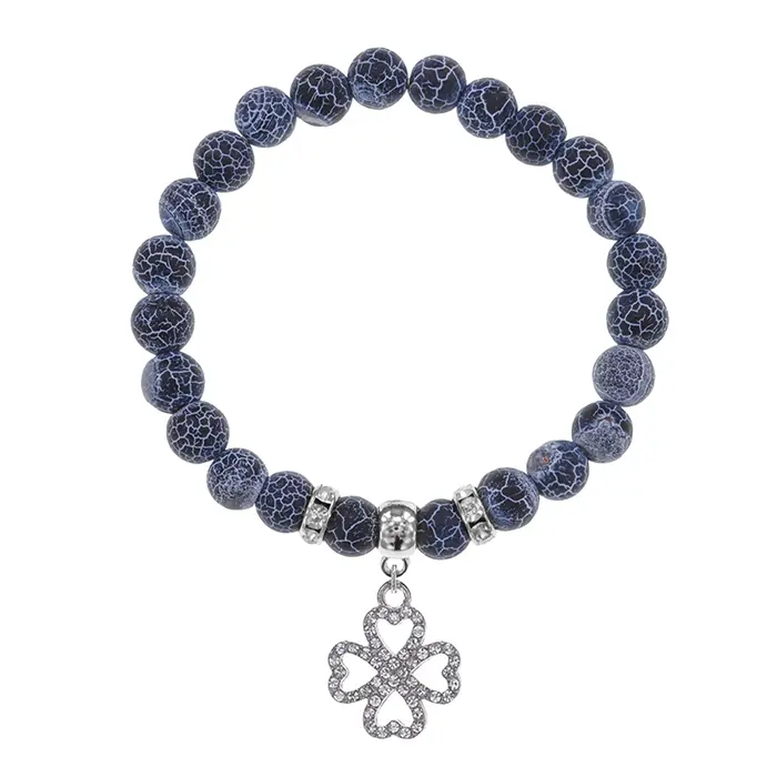 Браслет Клевер (удача и везение) нат.камень синий Африк. агат 8мм BS-CR-0537