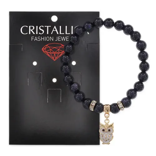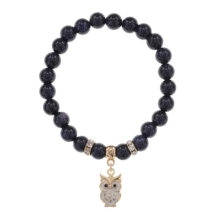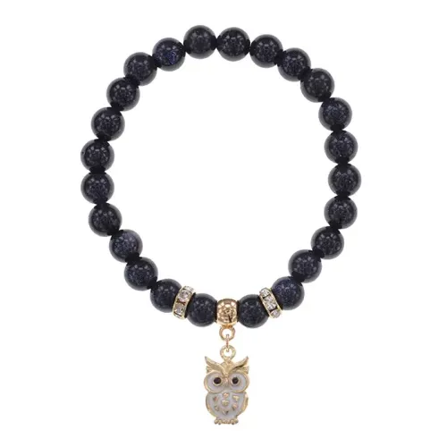 Браслет из синтетического камня синий авантюрин с бусинами диаметром 8 мм и подвеской в виде совы.
