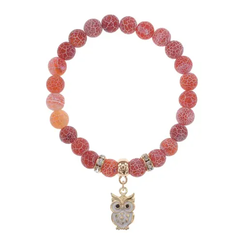 Браслет из натурального африканского агата с подвеской в виде совы. Стрейч-браслет с бусинами диаметром 8 мм.