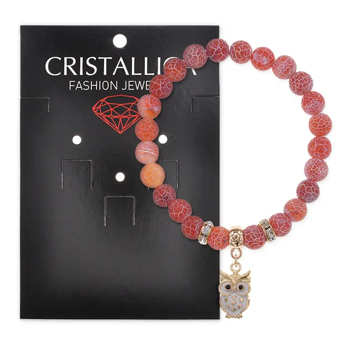 Браслет Сова (знания, счастье, успех) нат.камень Африканский агат 8мм BS-CR-0544