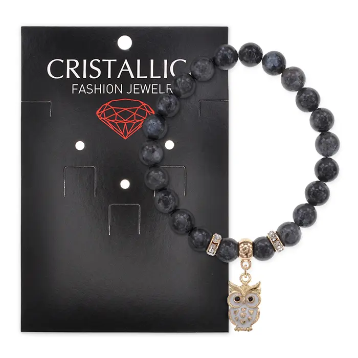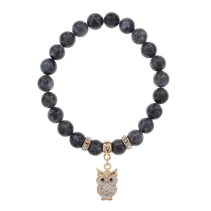 Браслет Сова (знания, счастье, успех) нат.камень Лабрадор 8мм BS-CR-0548