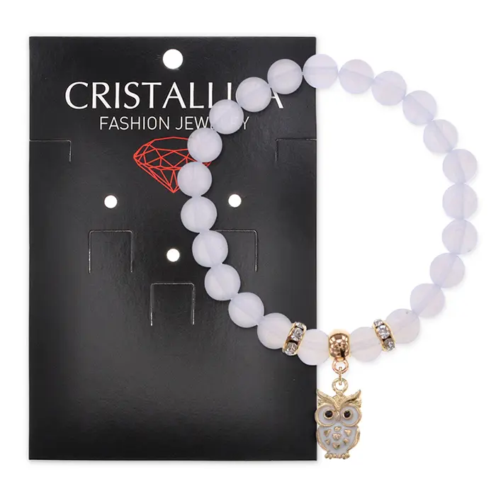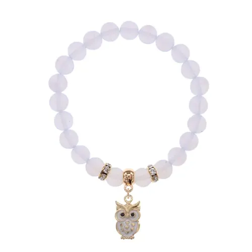 Браслет Сова (знания, счастье, успех) синт.камень Лунный камень 8мм BS-CR-0551