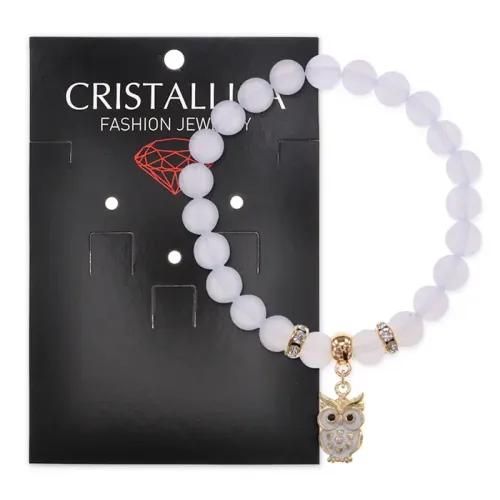Браслет из коллекции Cristallica с символом совы, изготовленный из синтетического лунного камня и светлой золотой фурнитуры.