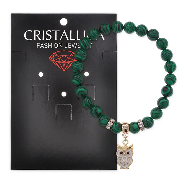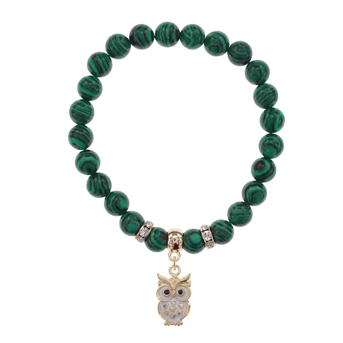 Браслет Сова (знания, счастье, успех) синт.камень Малахит 8мм BS-CR-0552