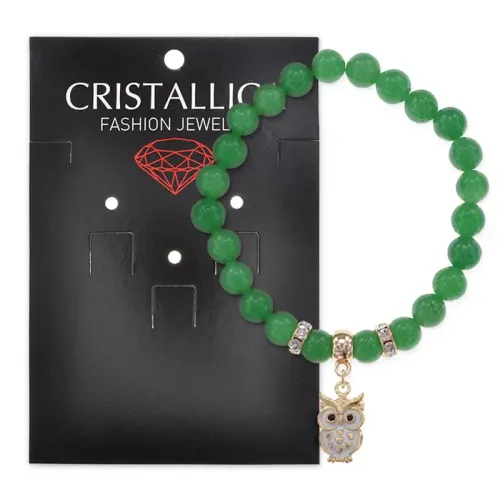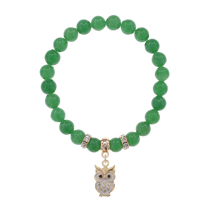 Браслет Сова (знания, счастье, успех) нат.камень Нефрит 8мм BS-CR-0553